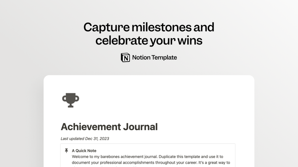 Use this one-page journal to document your accomplishments in a concise and meaningful way. It's great for: